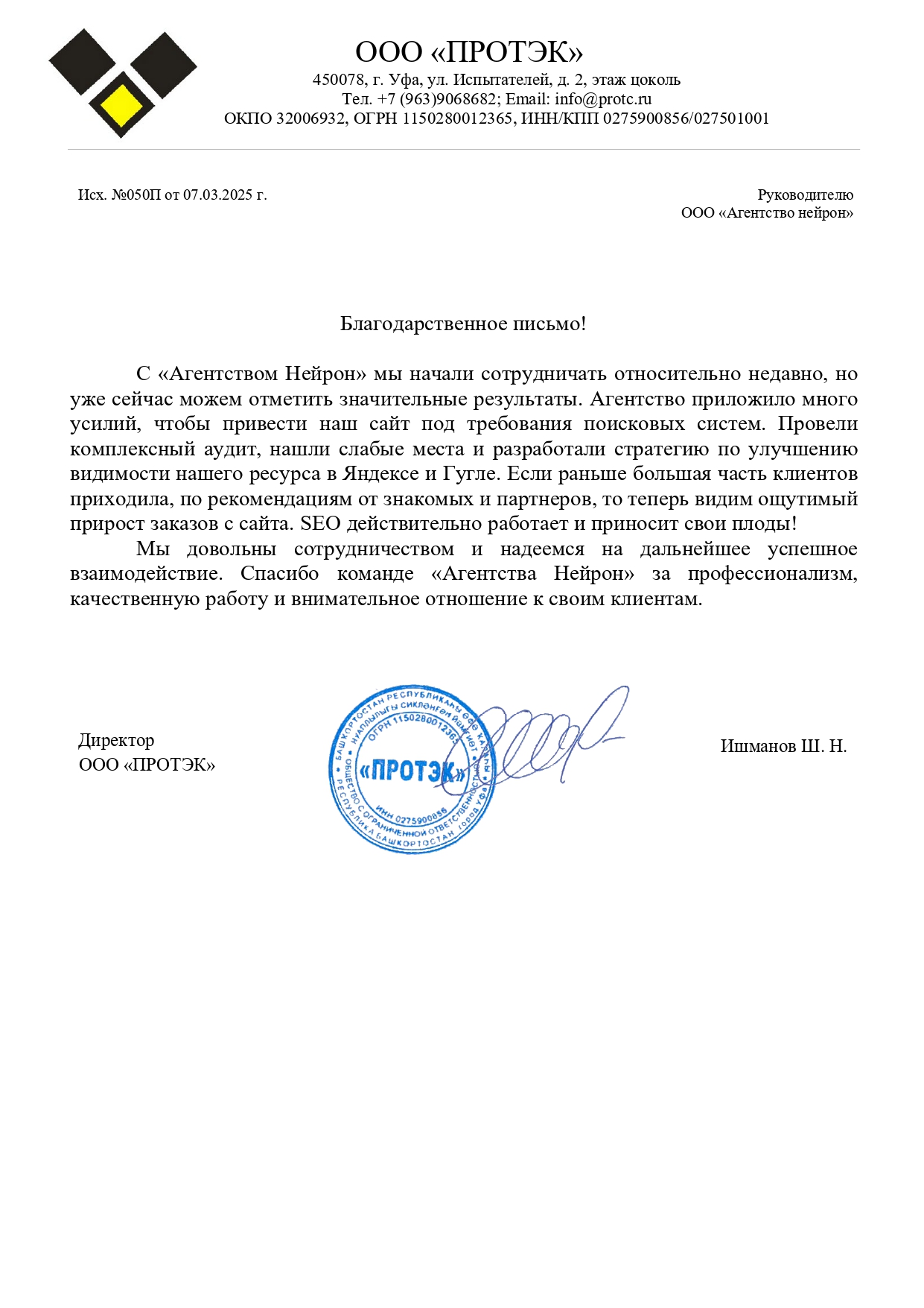 С «Агентством Нейрон» мы начали сотрудничать относительно недавно, но уже сейчас можем отметить значительные результаты. Агентство приложило много усилий, чтобы привести наш сайт под требования поисковых систем. Провели комплексный аудит, нашли слабые места и разработали стратегию по улучшению видимости нашего ресурса в Яндексе и Гугле. Если раньше большая часть клиентов приходила, по рекомендациям от знакомых и партнеров, то теперь видим ощутимый прирост заказов с сайта. SEO действительно работает и приносит свои плоды! Мы довольны сотрудничеством и надеемся на дальнейшее успешное взаимодействие. Спасибо команде «Агентства Нейрон» за профессионализм, качественную работу и внимательное отношение к своим клиентам.