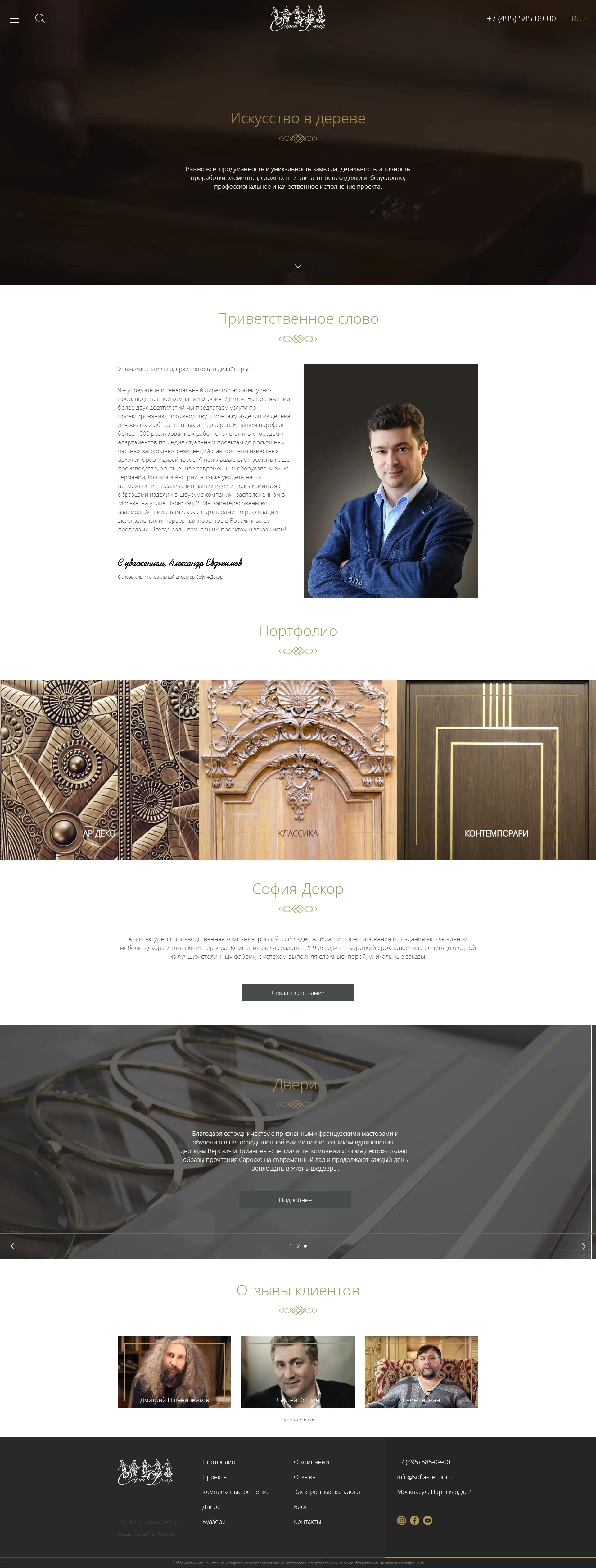 Архитектурно-производственная компания «София-Декор» уже более 20 лет занимается проектированием и созданием эксклюзивных интерьерных решений: от роскошных загородных аппартаментов до восточных замков.